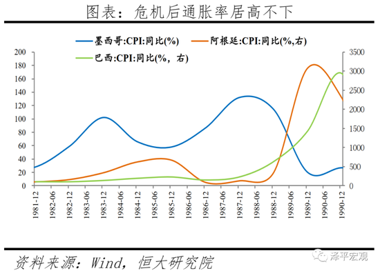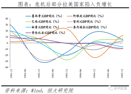 债务危机对拉美国家的经济发展造成剧烈冲击。1)经济增长率大幅下降。债务危机后,墨西哥、阿根廷、巴西、委内瑞拉等7个主要拉美国家经济皆一度陷入负增长。2)通胀率持续攀高。拉美地区的通胀率居高不下,1990年阿根廷和巴西CPI增速甚至超过2000%。3)失业率大幅升高,实际工资水平普遍下降。随着失业率的升高和实际工资的下降,人民生活水平降低,社会分配不均的状况也愈加突出。4)经济动荡引发社会矛盾进一步尖锐。1983年以来,智利、巴西等拉美地区许多国家都曾发生人民抗议物价上涨、抗议失业的游行示威和罢工。