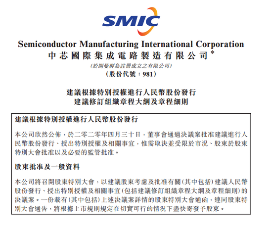 有分析人士认为,中芯国际在此时点回归,或和政策开放通道有关。4月30日,证监会发布实施《关于创新试点红筹企业在境内上市相关安排的公告》,下调了上市红筹企业回归A股门槛。同日,中芯国际审议通过境内上市议案。