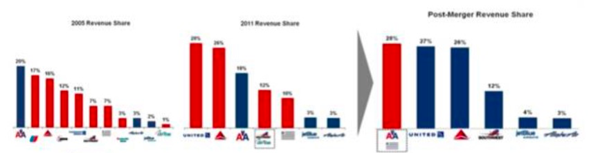 然而到2016年以后,大量航空公司因为竞争加剧陷入经营困境,纷纷被兼并重组,美国的天空逐渐形成了四大航空公司寡头垄断的市场格局。从这个角度看,市场集中度的提升,为航空企业提供了良好的盈利基础,价格战的消亡也增加了航空公司的投资价值。