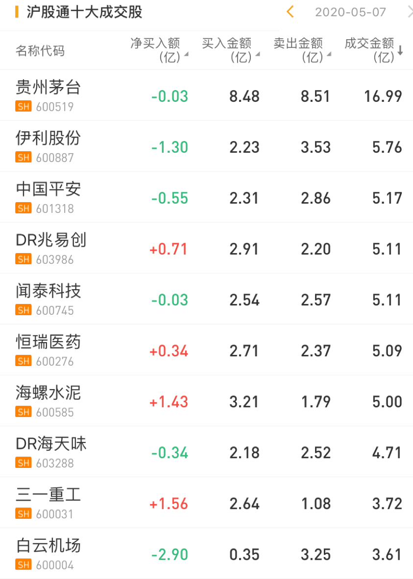 北上资金今日净流出14.37亿元,沪股通净买入海螺水泥1.43亿元,净买入三一重工1.56亿元,净买入恒瑞医药0.34亿元。
