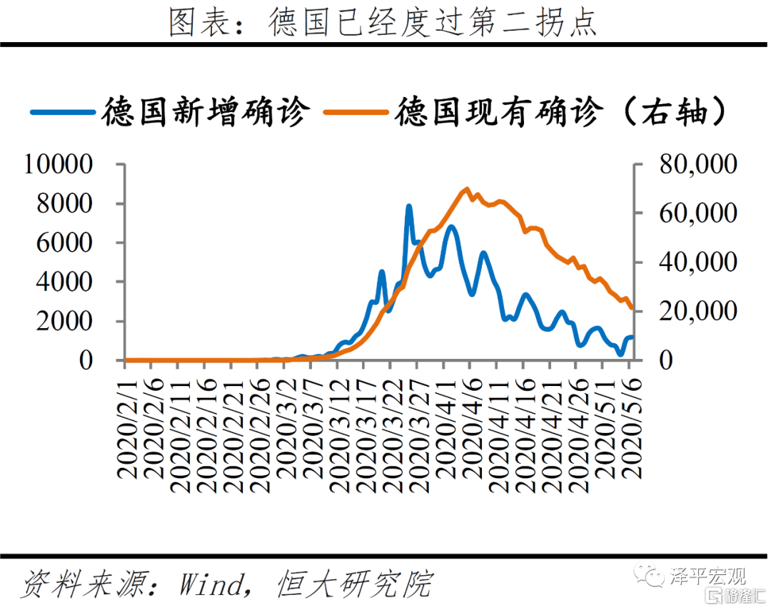 欧美放松封锁并逐步复工建立在病毒传播下降、加强检测、继续实施社交疏远措施等基础上,目前尚未看到再次爆发的迹象。病毒传播方面,欧美所有国家均已度过第一拐点,德国发现病毒基本传播数R0已经降至1以下,意味着病毒感染人数将下降;加强检测,美国计划将目前每日10余万的检测能力提升至2000万,英国计划提高至每日10万例,德国则为每2万人口配备一个追踪团队,加大病毒接触追踪力度;防疫措施方面,欧美国家放松封锁后仍然实行社交疏远措施,包括禁止社交聚会、暂缓开放酒吧餐馆、公共场所佩戴口罩等。目前在率先开放的德国尚未发现再次爆发的迹象。