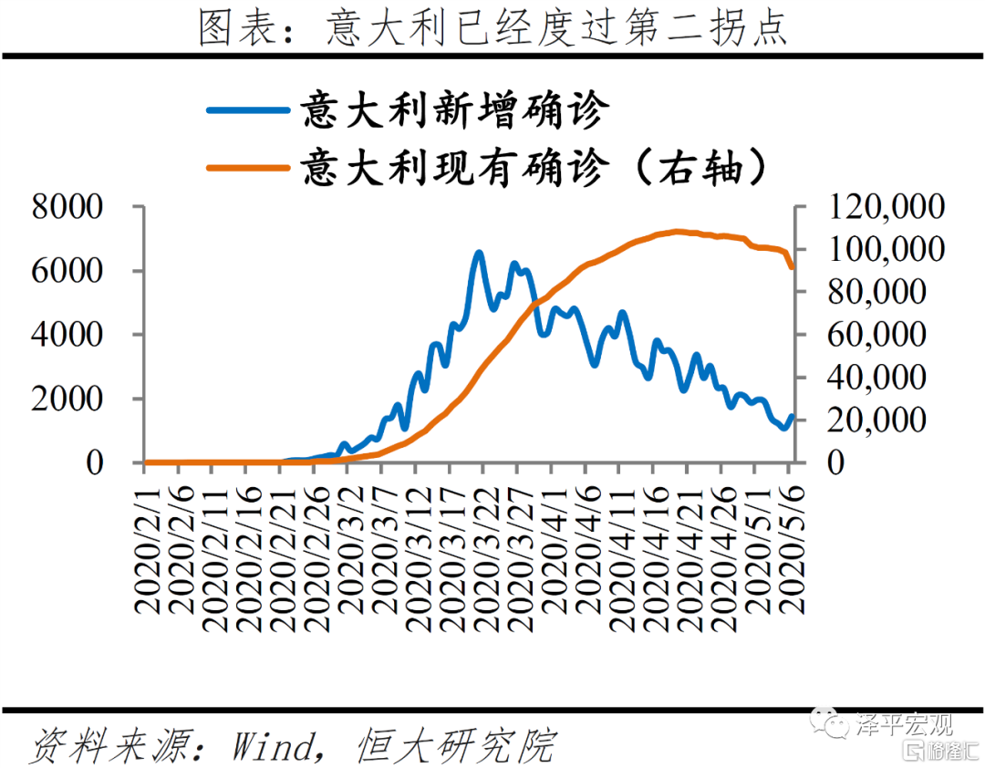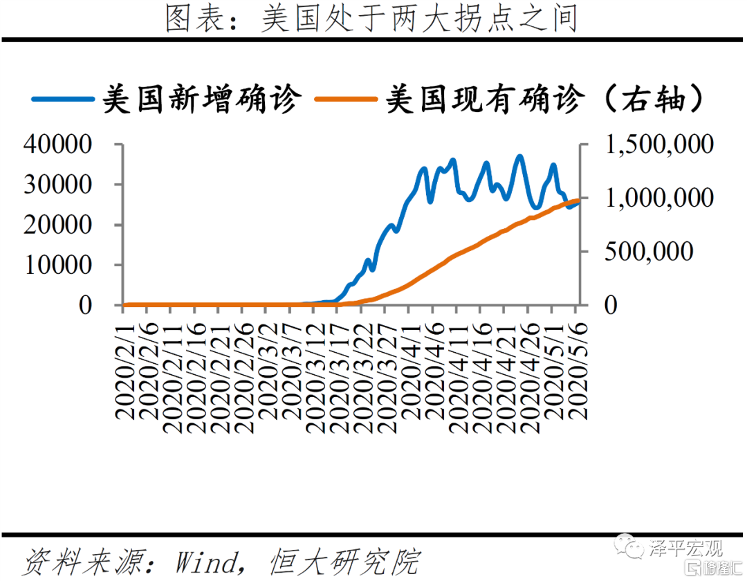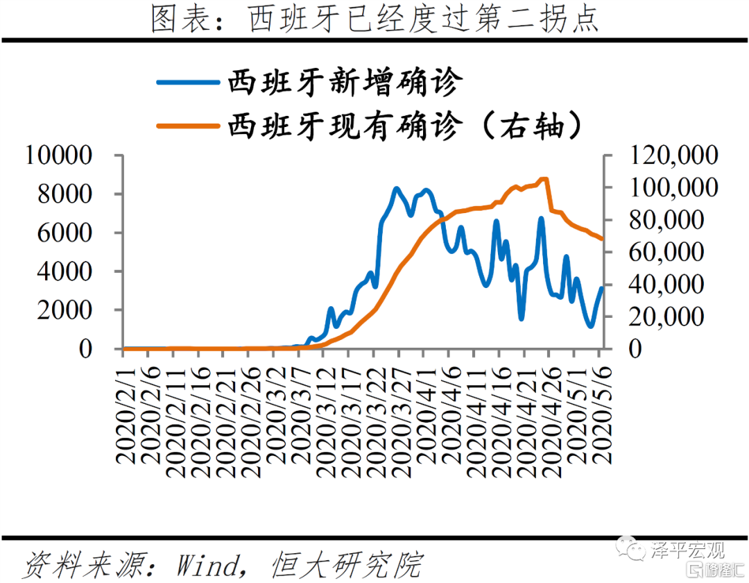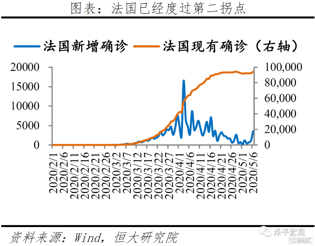 从新增确诊数量和现有确诊数量两大拐点看,发达经济体已经或即将度过第二拐点,疫情正在缓解,预计1-3个月内基本控制住疫情,但与中国不同,欧美疫情可能存在长尾特征。除日本由于二次爆发而继续封锁外,欧美主要经济体均已经或即将放松封锁措施,正在逐步复工,世界经济环境有望走出新冠疫情的影响并逐步恢复,中国在控制疫情和复产复工方面走在全球前面。当然,后半段还不能大意,做好疫情防控、药物研发、政策救助和经济恢复。