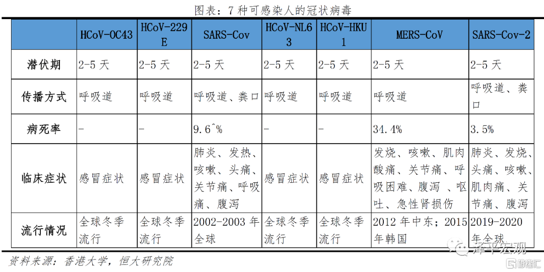 从冠状病毒流行历史和人们的警惕性看,疫情持续时间基本在2年以内,二次爆发严重程度可能将弱于第一次。本次新冠肺炎前,已知可感染人类的冠状病毒共6种,其中4种致病力弱,只引起普通感冒样症状,主要在冬季季节性流行,而SARS、MERS虽致病力强,但之前的大流行均在1年内结束,因此新冠肺炎疫情在2年内结束的可能性较大。另一方面,本次疫情目前已经引起各国的重视,大部分国家已经对新冠防疫具备了一定经验和二次爆发准备,警惕性较高,预计二次爆发严重程度将弱于第一次。