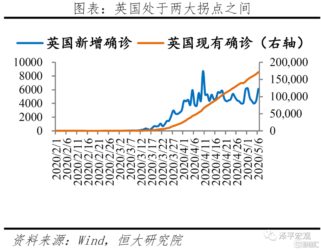 第三梯队美国和英国,目前处于两大拐点之间,预计基本控制疫情还需要至少两个月。