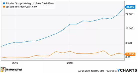 具体反应在账面数据则是此前四个季度中,阿里巴巴将其高达41%的收入转换为可自由支配的现金,而京东的现金保证率仅停留在3%。