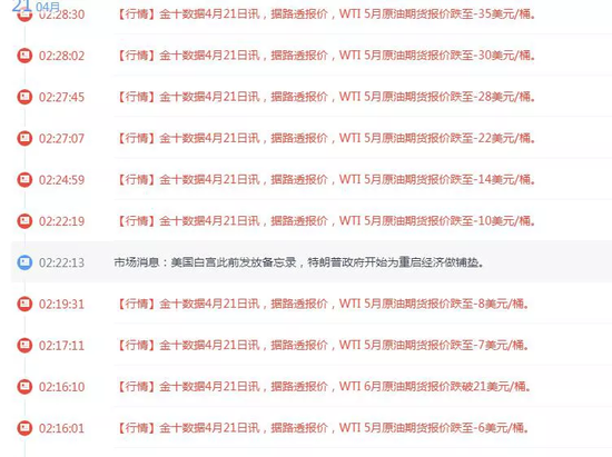 在美国原油期货5月合约最后交易日,临近交割创出史无前例的-37.06的负数结算报价,跌幅超300%!