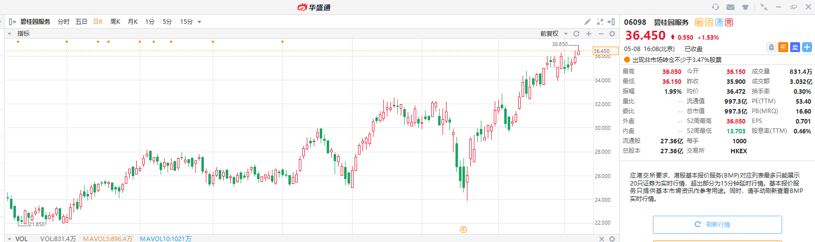 集团主要业务为物业管理服务、小区增值服务、非业主增值服务及「三供一业」服务(包括物业管理和供热服务)。专业向住户提供综合服务,并覆盖整个物业管理价值链。集团成立于1992年,并于2018年6月由母公司(2007)碧桂园控股以介绍形式分拆上市。