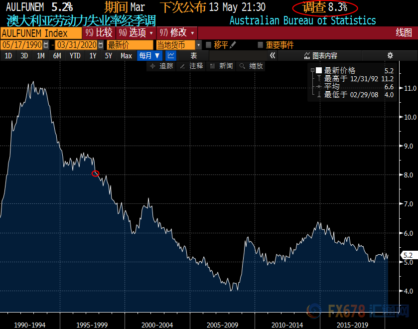 周四亚洲时段将出炉澳大利亚就业数据,目前市场的预期比较悲观,失业率可能将升至8.3%,这将是1997年8月份以来最差表现,前值为5.2%;新增失业人数将达到55万人,这也将是2000年以来最差表现,前值为增加0.59万人;这种悲观的预期,可能会在未来一周对澳元产生一些拖累。