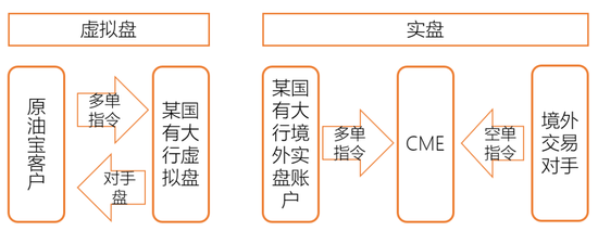 据大白推测,某油宝的交易结构应该是区分了虚拟盘和实盘,虚拟盘是一个体现某银行与某油宝的投资者的竞技场,它模拟CME中WTI原油期货的价格走势,所以也会略有延迟,而实盘则是一个体现某大行、CME和其他CME上交易对手的竞技场,这是真正在CME交易所开仓平仓进行交易。