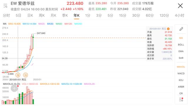 爱德华兹(EW)年K线线走势