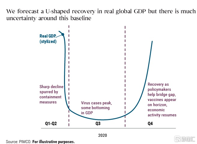 Joachim Fels同时也不否认,如果疫情持续时间长于预期,或者企业违约率高于预期,则U型复苏可能会受到挑战,演变成延长的l型轨迹,或W型轨迹。