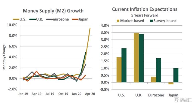 (各国货币供应与5年通胀预期 来源:Northern Trust、牛津经济研究院)