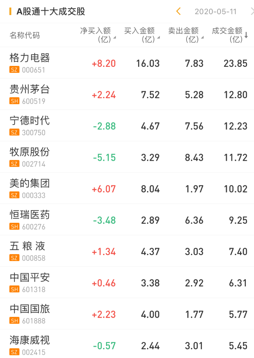 今日,北上资金净买入格力电器8.20亿元,净买入贵州茅台2.24亿元,净买入美的集团6.07亿元,净买入中国国旅2.23亿元。