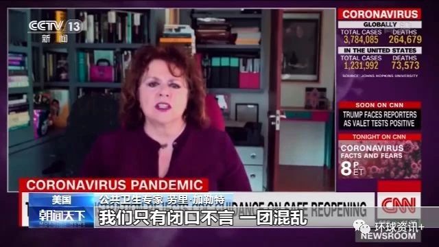 美国科学记者及公共卫生专家 劳里·加勒特:“每一天我们都在面对未知,每一天病毒都让我们措手不及,我们没有一个为每个州或全国的公共卫生部门提供智慧的机构,我们只有闭口不言、一团混乱。”