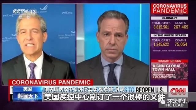 美国疾控中心前执行主任理查德·贝瑟:“(这些建议)是每个州都在寻求的。鉴于我们正在重启一部分经济,我们希望在最好的公共卫生建议的基础上,小心地重启,慢慢来。美国疾控中心制订了一个很棒的文件(,然而却被政府忽视了)。”