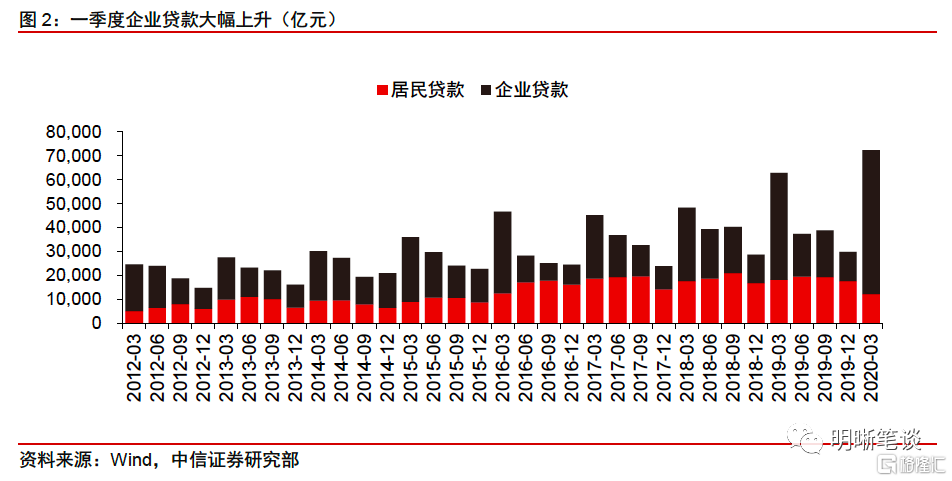 企业部门:图1中可以很明显的看到,今年一季度杠杆率的变化与2009年一季度非常相像,即企业部门杠杆率大幅拉升。那么,2020年企业杠杆率能否像2019年一样,二季度继续拉升,全年实现20%的增幅呢?答案很可能是否定的。2019年企业杠杆率的大幅上行源于“四万亿计划”和城投公司比较激进的加杠杆行为,是存在一定持续性的。但今年一季度的企业杠杆抬升,完全是因为针对疫情和复工复产的贷款支持引致。这二者之间存在本质的不同,在今年“房住不炒”和非标融资受限的情况下,可以继续加杠杆的主体大幅减少了,而疫情期间的救助贷款只是阶段性的,暂时性的。因此,考虑到企业杠杆在一季度已经大幅提升,后续杠杆空间将有所收窄。