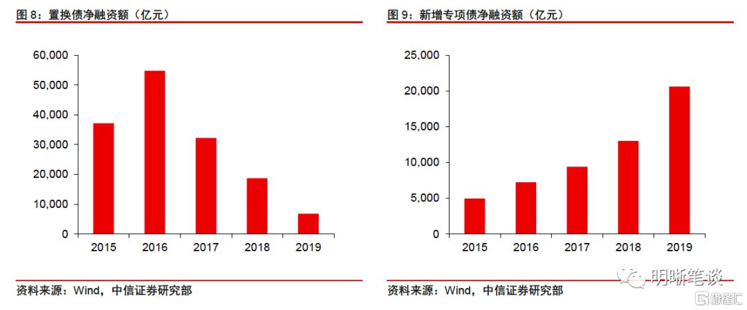 隐性债务化解是宏观杠杆从企业部门向政府部门转移的过程。从2015年隐性债务置换开始,政府通过发行债券的方式来接手政府有偿还义务的债务。在置换债逐渐发放完毕后,新增专项债发行量不断提升,部分可能用于借新还旧。与此同时,通过加强金融监管,对城投公司无序的金融扩张进行限制。在这个过程中,部分省级行政区的城投有息负债开始出现持续收缩,比如天津,还有部分省份出现阶段性的的震荡下行趋势。我们认为,未来城投平台的债务融资能力可能会出现趋势性的下降,政府通过扩张债务的形式对其支持的力度将有所提升。从宏观杠杆率的角度看,这种趋势将体现为杠杆或债务由非金融企业部门向政府部门转移。