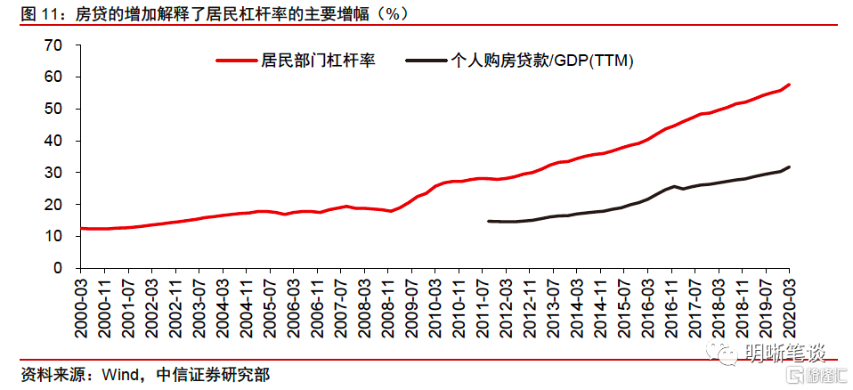 国内居民杠杆率因房贷增加而快速增长,但仍低于发达国家平均水平。从2012年一季度到2020年一季度8年的时间里,居民部门杠杆率上升29.5%,其中大约17.2%的增幅能够用个人购房贷款的上升来解释。但是,与发达国家平均水平相比,国内居民杠杆率水平还有约18.3%的差距,与美国相比有20.2%的差距。过去国内居民杠杆率的抬升主要与个人购房贷款的增加有关。