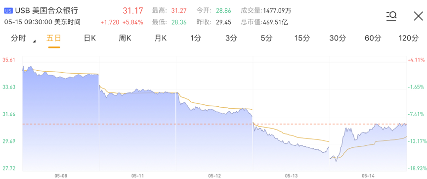 美国合众银行股价因此大跌,5月13日单日跌幅达到6.95%,但在5月14日开始止跌回升。