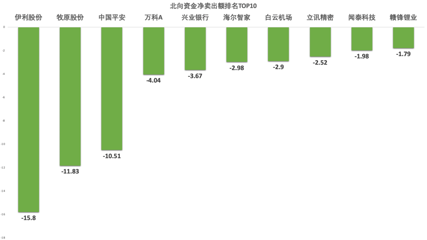 北向资金净卖出标的TOP10中,排名第一的是乳业巨头伊利股份,遭净卖出达15.8亿元,原因或与该公司Q1大幅下滑的业绩有关。此外,牧原股份、中国平安亦遭超10亿元级别的资金卖出。