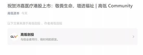 今日午间,在沛嘉医疗首日上市大涨后,高瓴资本在公众号中发出了《祝贺沛嘉医疗港股上市:敬畏生命、增进福祉》一文。