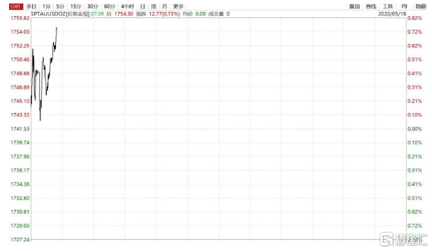 鲍威尔讲话后,现货黄金短线拉升,伦敦金现突破前高1754.46美元/盎司,创2012年10月以来的新高。