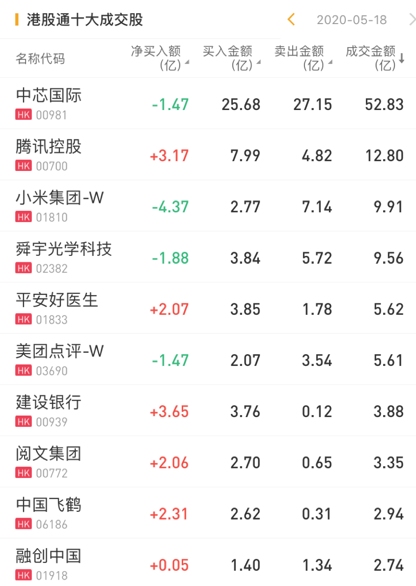 今日,南下资金净买入腾讯控股3.17亿港元,净买入平安好医生2.07亿港元,净买入建设银行3.65亿港元,净买入阅文集团2.06亿港元。