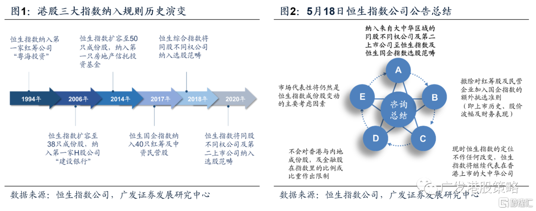 事件:5月18日,恒生指数公司发布《有关恒生指数及恒生中国企业指数应否纳入同股不同权公司及第二上市公司之咨询总结》,宣布同股不同权公司及第二上市公司正式被纳入恒生指数、国企指数选股范畴。这也是2018年恒生综指将同股不同权公司纳入选股范畴后,恒生指数公司又一次较为重大的纳入规则调整。除同股不同权与第二上市公司纳入恒指选股范畴外,本次咨询报告还涉及红筹股与中资民营股纳入国企指数的标准修改、恒生指数定位等其它内容。