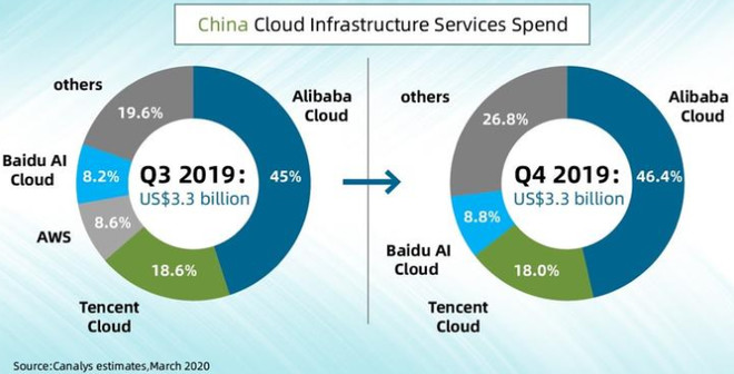 至于现在很热门的云运用与服务,百度智能云也在逐步提升市场份额;2020年3月23日,Canalys发布的2019年第四季度中国公共云服务市场报告显示,百度智能云市场份额相比上季度上升一位,正式跻身前三甲;收入同比增速则97.9%,在中国市场排名第一。