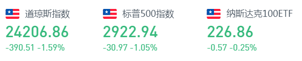 周二美股科技股走强,纳指一度涨超0.8%。美联储主席鲍威尔在预先准备的国会证词缺乏好消息,美股小幅低开,盘初持续下行,盘中跌幅一度收窄至接近翻红,然而尾盘回吐涨幅。截至收盘,标普500指数跌31.00点,跌幅1.05%,报2922.94点;纳指跌49.70点,跌幅0.54%,报9185.10点;道指跌390.50点,跌幅1.59%,报24206.86点。
