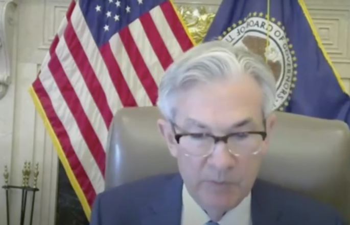 图为鲍威尔在出席网络听证会