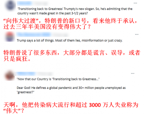 如此巨大的反差,也让外媒对特朗普口中的“向伟大过渡”和“正常化”产生了怀疑。