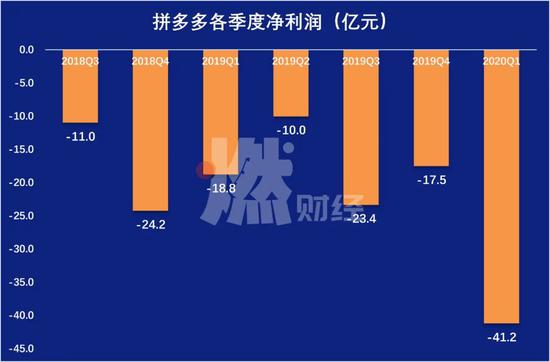 但是问题也很尖锐,净亏损41.2亿元,同样大大超过预期。拼多多成立至今一直亏损,分析师对一季度给出了29.9亿元的亏损预期,但没想到实际要超出38%,并创造了拼多多历史上(排除2018年二季度股权激励导致的账面亏损)最大的季度亏损。