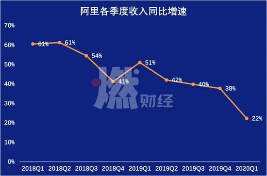 阿里各季度收入同比增速