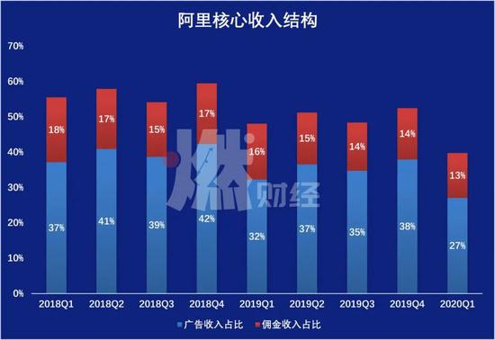 阿里广告收入和佣金收入的营收占比
