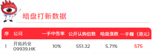 自从诺诚健华、康方生物和沛嘉医疗这批医药新股名声燥热后,打新族十分偏好“B”类医药股的魔力。遇上大市受挫、板块走低,周五上市的开拓药业依旧逆势大涨,全天涨幅最高达13.9%,一手账面盈利达1400港元。医药股机会不断,接下来继续关注泰格药业,海普瑞,麦廸卫康,欧康维视,这些医药企业均已递表,或在这两个季度陆续上市。