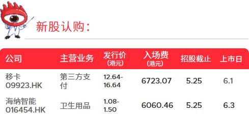 三、当前有2只新股正在招股:移卡 ,海纳智能