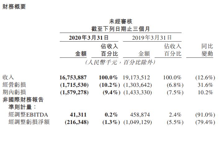 美团点评第一季度调整后净亏损2.163亿元人民币,第一季度营业损失17.2亿元人民币。