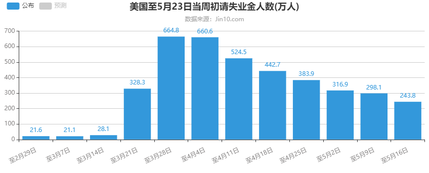 人们普遍认为,4月的非农可能只是噩梦的开始。一大证据是,在非农数据公布后的几周内,初请失业金人数有递减的趋势,但依然十分庞大,上周录得240万人。据统计,自疫情爆发以来,申请失业金人数已经高达3860万。分析人士预计下周将再次出现大量失业人数。