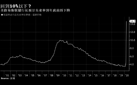 这位圣路易斯联储行长的观点比华尔街的大多数人更为乐观。彭博调查的经济学家预计,第四季度失业率将达到10.3%。