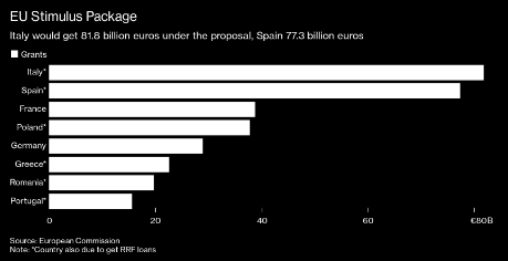 欧盟委员会公布了一项史无前例的刺激计划以应对近代最严重的经济衰退,并为陷入困境的意大利继续留在欧盟提供支持。