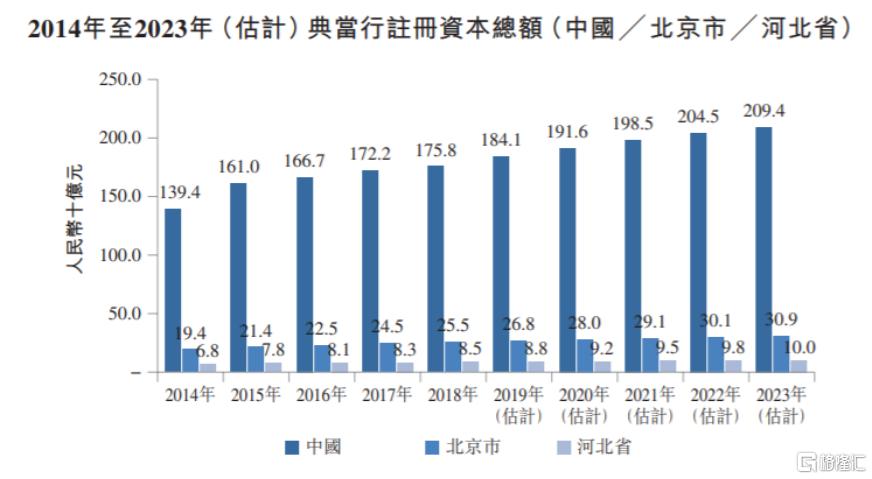 于2014年至2018年期间,中国典当行的注册资本总额稳定增长,由约人民币1,394亿元 增至约人民币1,758亿元,复合年增长率约为6.0%。预计2023年将增至约人民币2,094亿元,2019年到2023年期间的复合年增长率约为3.3%。