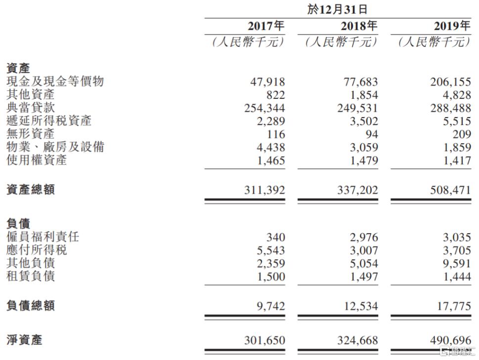 截至2019年12月31日止三个年度,资产分别约为人民币3.11亿元、人民币3.37亿元、人民币5.08亿元,负债分别约为人民币974万元、人民币1253亿元、人民币1778亿元及人民币15.73亿元。资产净值分布为约人民币3.02亿元、人民币3.24亿元、人民币4.9亿元。