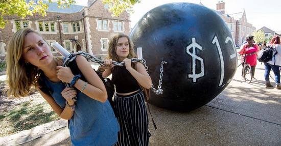 美国近4500万人背负着学生贷款。目前毕业生们的平均债务约为3万美元,是1990年代初1万美元的三倍。 还款对很多人来说是一个挑战:每天都有3000名借款人违约。