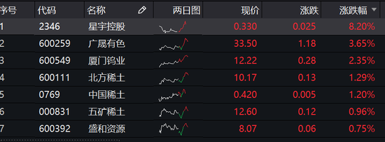 新浪港股讯 5月28日消息,稀土股集体上涨,星宇控股涨8.2%;广晟有色涨3.65%;厦门钨业涨2.35%;北方稀土涨1.29%;中国稀土涨1.2%。