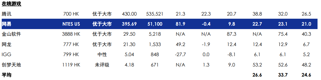 网易计划年内将推出更多游戏,包括《猎手之王》,《实况球会经理》,《EVE ECHOES》,《阴阳师:妖怪屋》、《哈利波特:魔法觉醒》、以及《暗黑破坏神不朽》, 受益于此, 预计网易在线游戏收入在2020 年将保持持续增长势头。