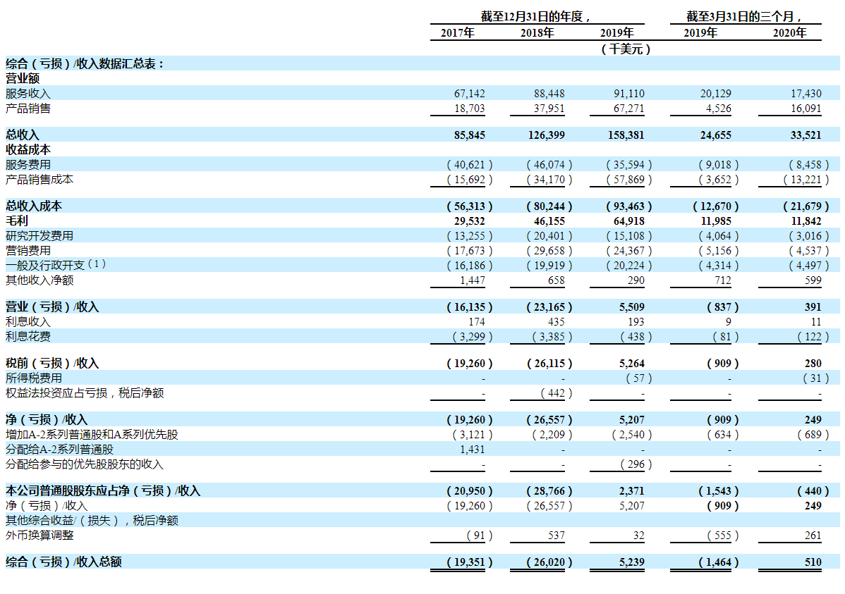 收入地区分布逐渐多元化,中国以外地区的收入占比从2018年的50.9%增长至2019年的67.9%。优克联2.0服务收入占比也不断提高,从2018年的4%扩大至2019年的27%,其中2019年第四季度,优克联2.0服务收入占比达到50%。