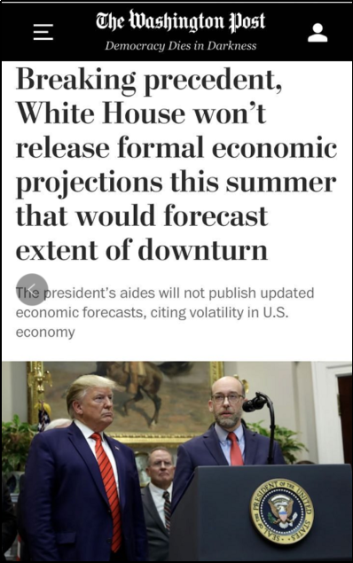 即使在2008年金融危机期间,经济预测数字令政府难堪,但奥巴马依旧按惯例在中期评估中进行了经济预测。虽然特朗普政府此次强调,取消预测是为了避免新冠疫情下经济动荡造成预测不准,然而分析认为,该决定实际上是为了使其免于透露“此次衰退对经济增长究竟造成何种伤害,高失业率所带来的痛苦将持续多久”。
