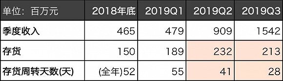 此外,分析人士称,作为一家零售企业,存货对于瑞幸咖啡来说是非常重要的指标。2019二季度,公司收入环比增长90%,存货却仅上涨了23%;更匪夷所思的是,2019三季度,公司收入环比增长了70%,存货总量反而下降了!公司存货周转天数也从2019年一季度的55天下跌到了三季度的28天。