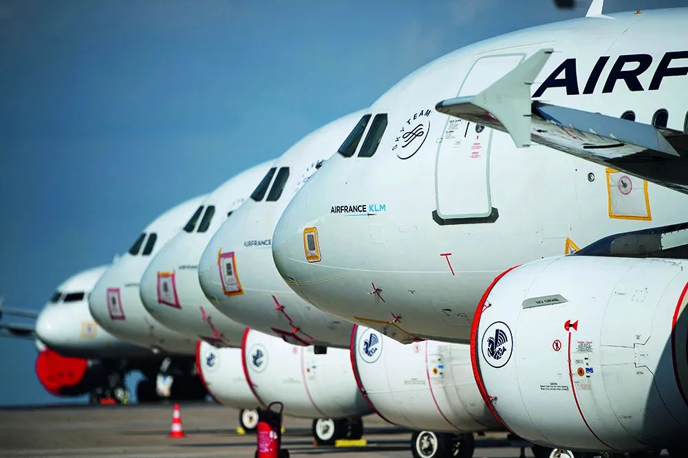 5月25日,法国巴黎戴高乐机场停靠着许多法国航空的客机。图/视觉中国